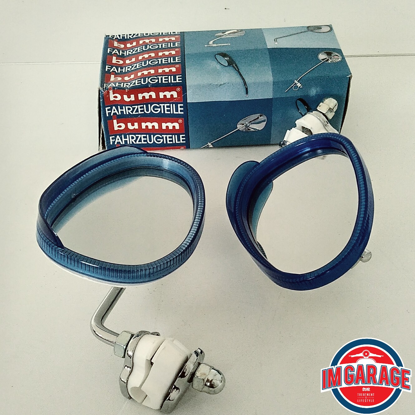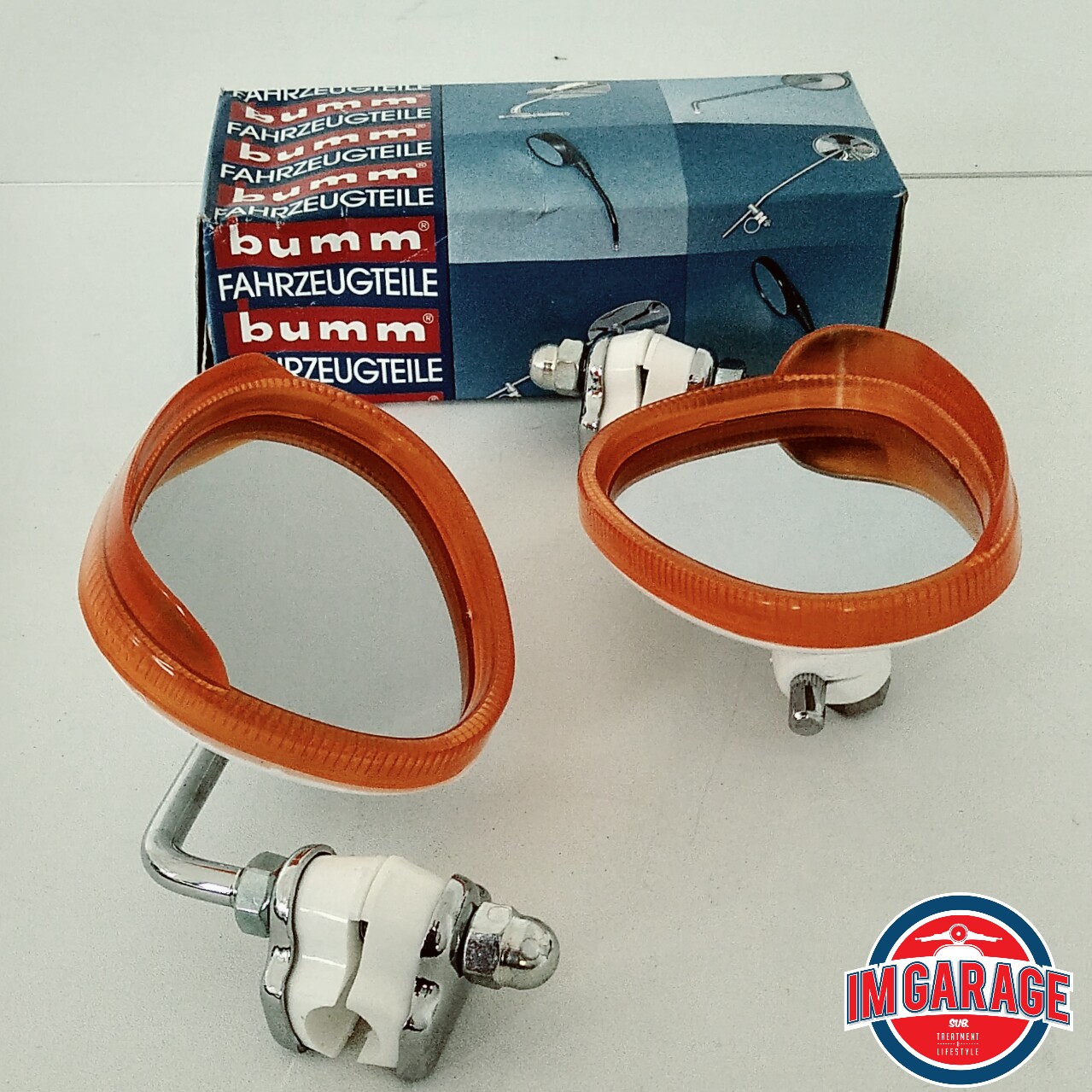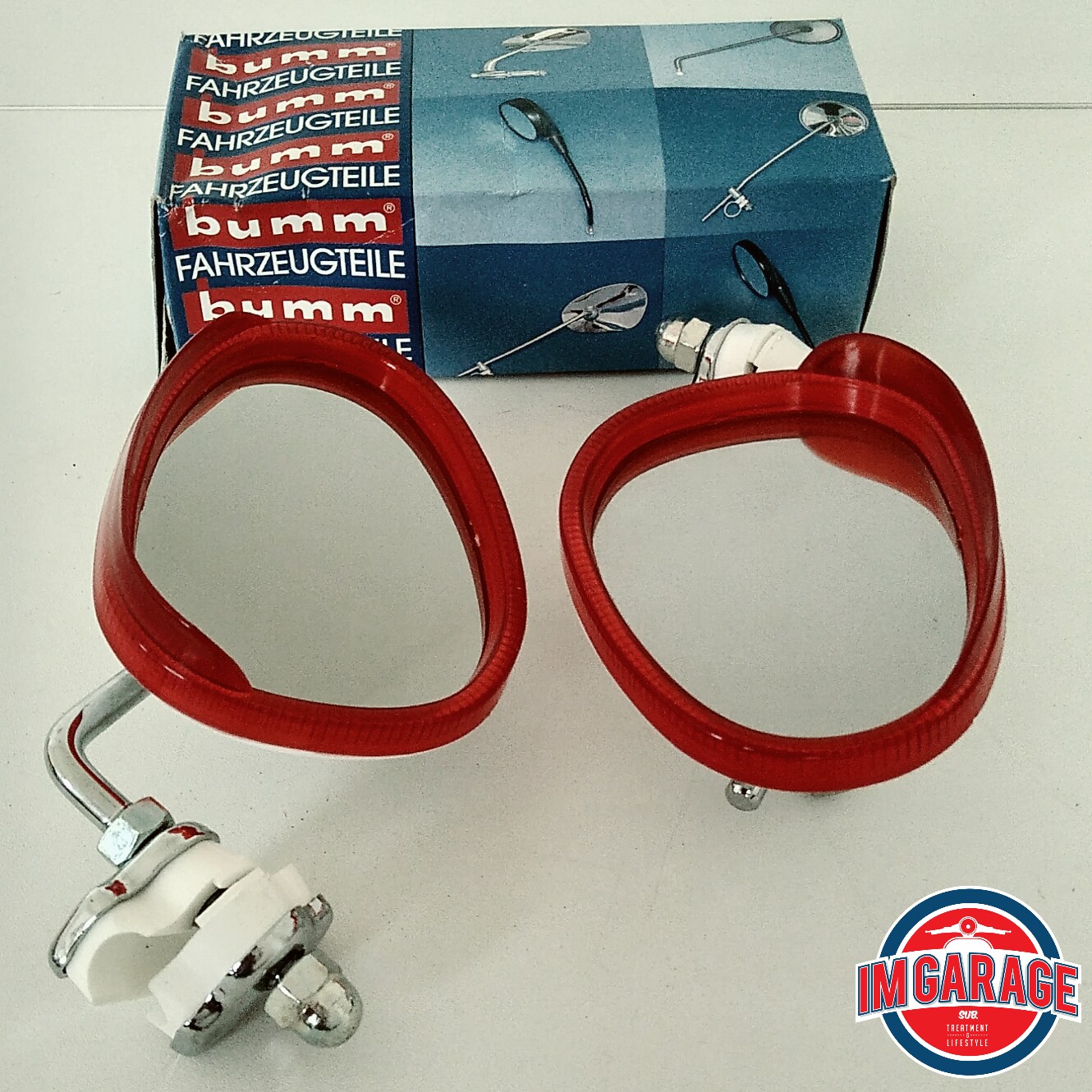 Spion Aksesoris untuk Vespa Klasik Merek Bumm, Dijual satuan terpisah, tersedia dalam tiga pilihan warna: Merah, Orange, Biru