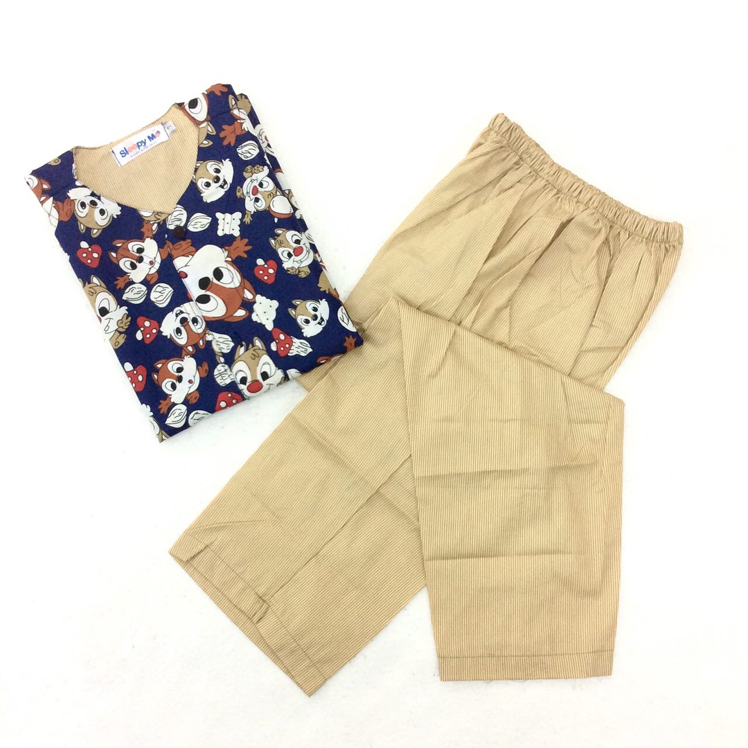 Warna : atasan basic navy motif chipmunks/tupai, celana garis krem