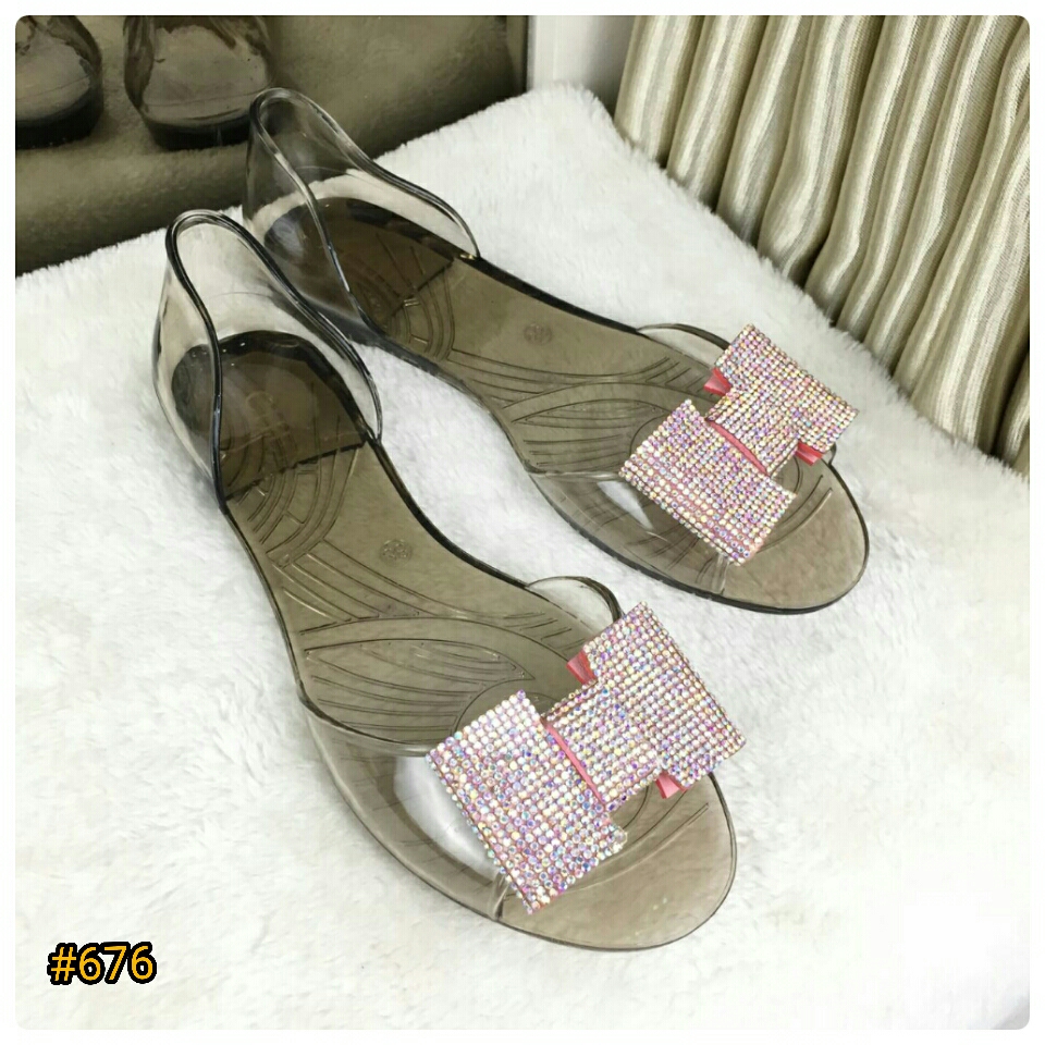 Ready Stock New Arrival Fashion Anastasia Swarovski Jelly Flats #676