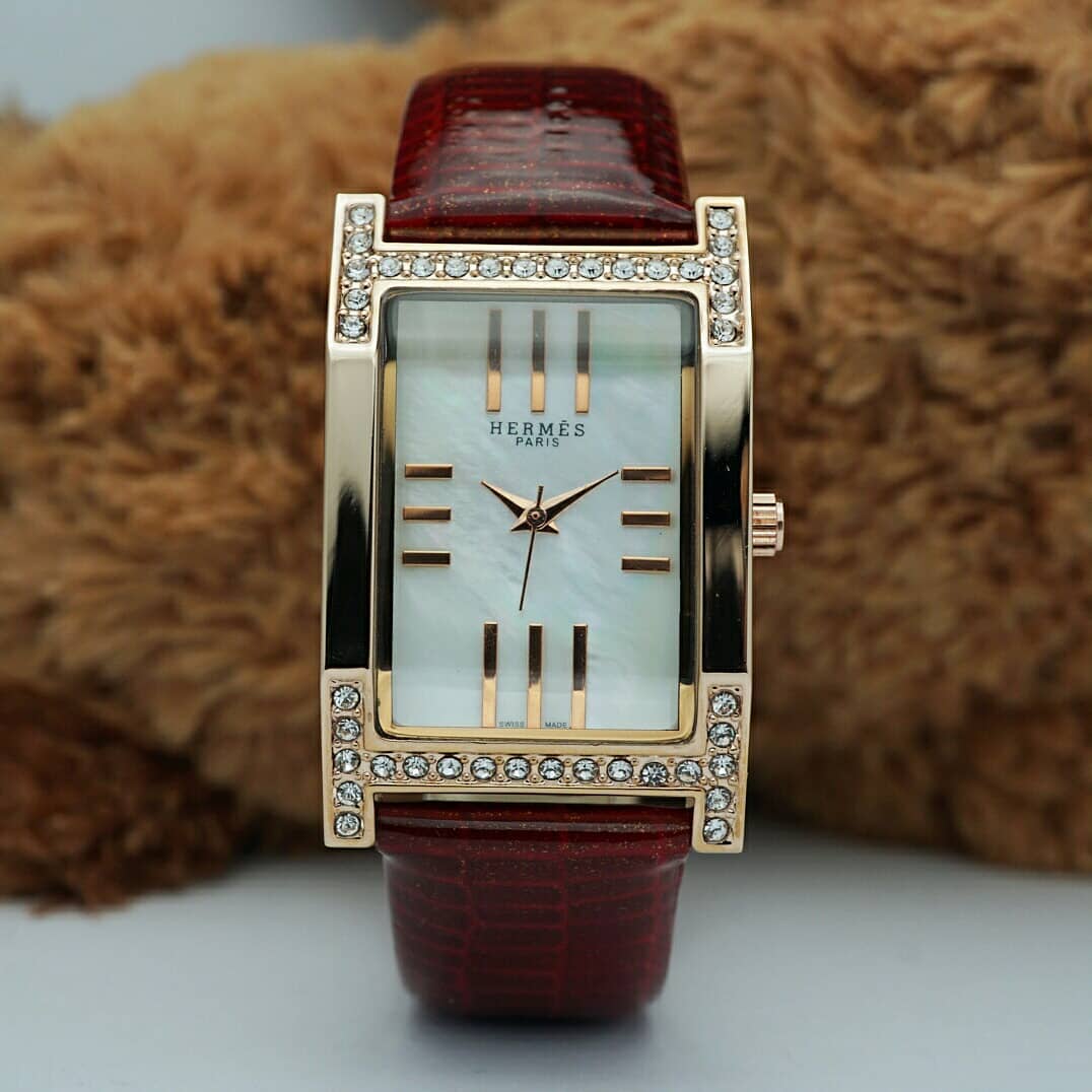 - Jam tangan wanita / watch for women Hermes leather - maroon