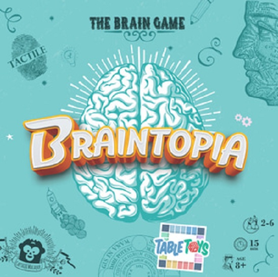 Braintopia is a simple game that will test your skills of observation, quick thinking, and coordination. The game is made up of eight fast-paced challenges that keep you on your toes as you race to refocus your mind and solve each puzzle before your opponents. As you and up to five other players proceed through the challenge deck, you collect the cards you have answered both accurately and most quickly. A correctly identified tactile card or a pair of any other challenge card will earn you a piece of the brain. The first player to four brain pieces wins!