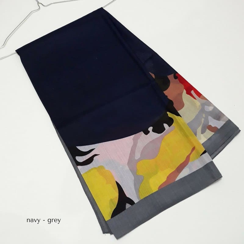 - Riana Scarf Square Hitam pinngiran abu