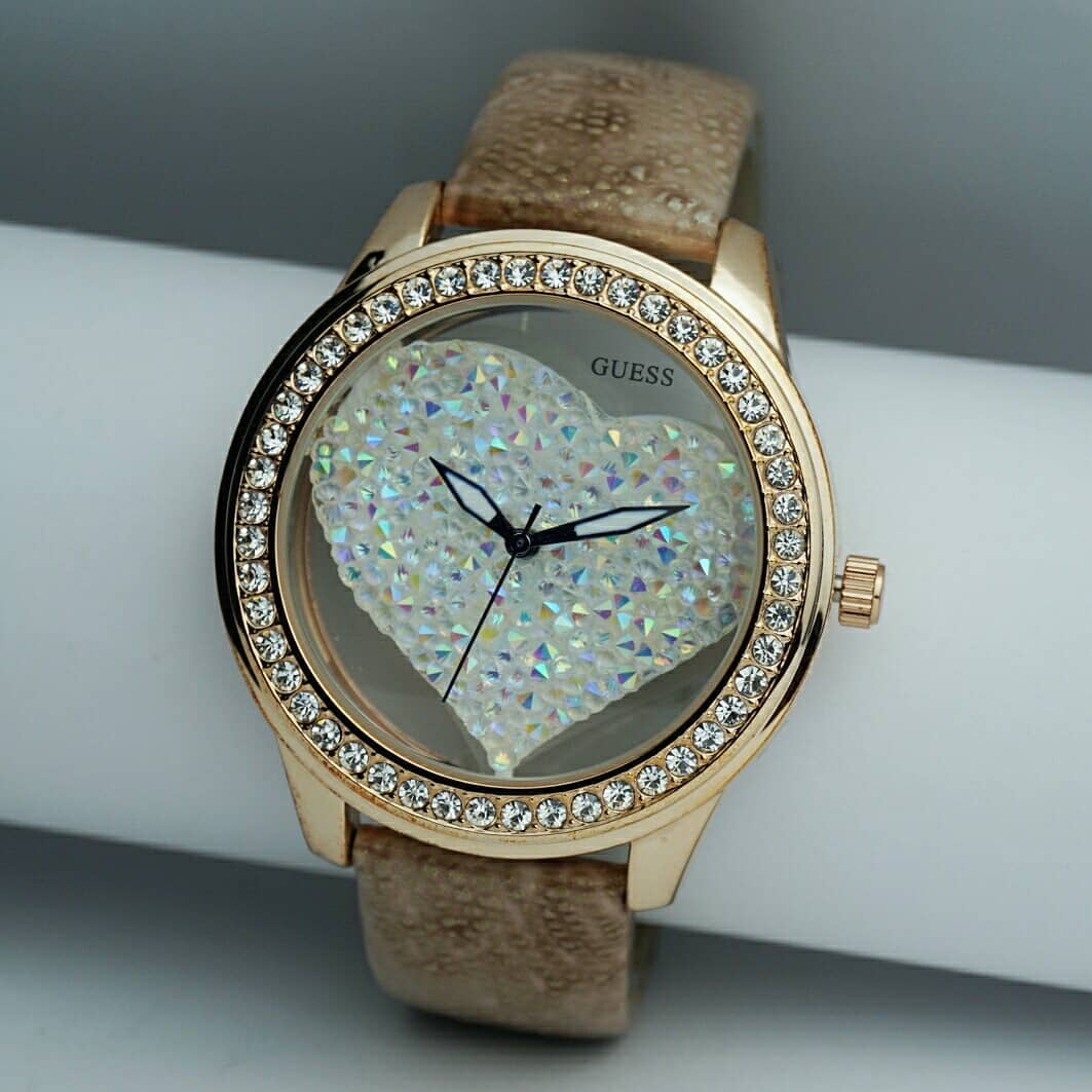 - Jam tangan wanita / Watch for women Guess diamond heart leather​ - cream