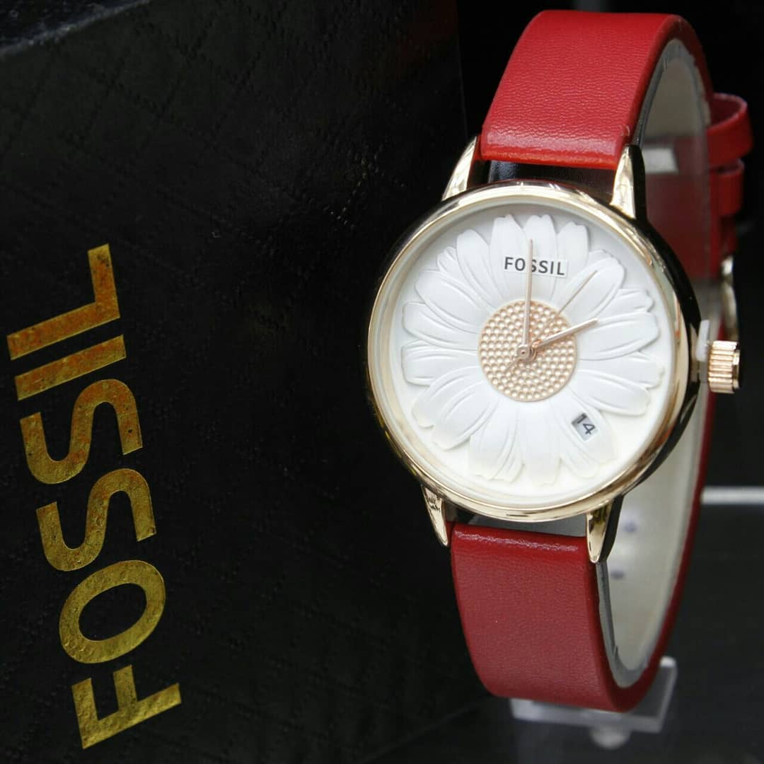 - Jam tangan wanita / Watch for women Fossil Flower leather - red silver