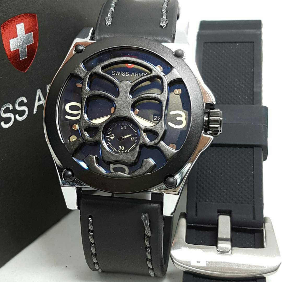 - Jam tangan pria / Watch for men Swiss Army Leather Skull - black silver