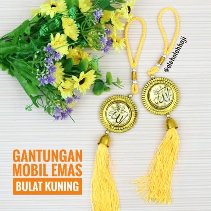- Gantungan Mobil Emas Bulat Lafadz Allah Muhammad - kuning