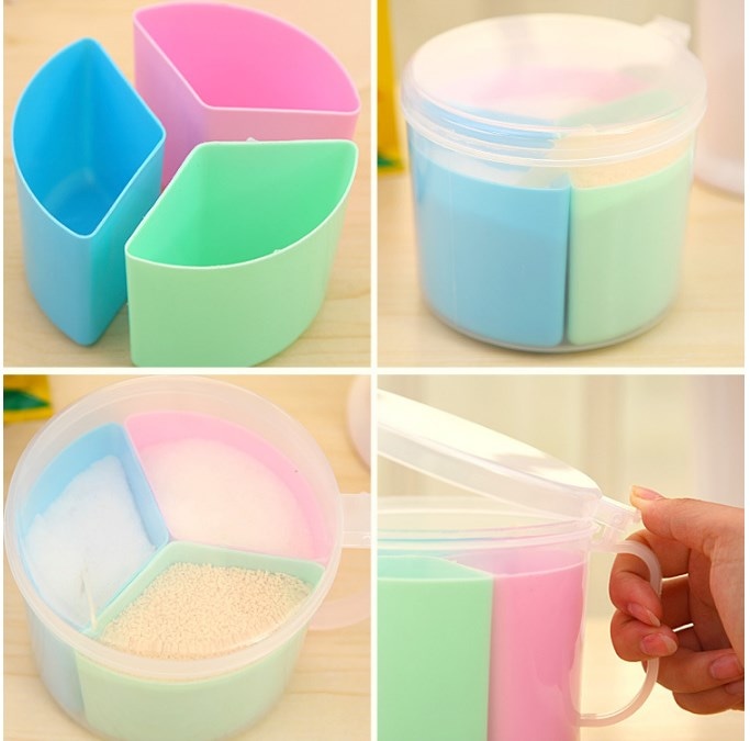 Satu set terdiri dari 3 kotak bumbu dan 1 wadah untuk tempat kotak bumbu (bentuk spt cangkir). Dilengkapi dengan sendok bumbu. Kotak bumbu bisa dilepas dari wadah, memudahkan untuk mengambil salah satu jenis bumbu yang dibutuhkan saat masak.