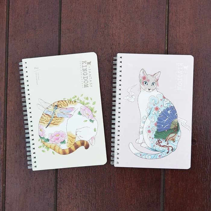Buku catatan bergaris dengan ilustrasi seekor kucing unik dengan lukisan di badannya dalam warna-warna yang cerah. Buku berukuran kecil yang praktis untuk dibawa kemana saja.