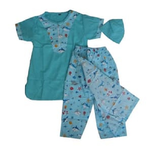 - Sarkoci / Baju Koko+ Sarung Celana+ Peci Bayi/ Anak Laki-laki Size S Blue