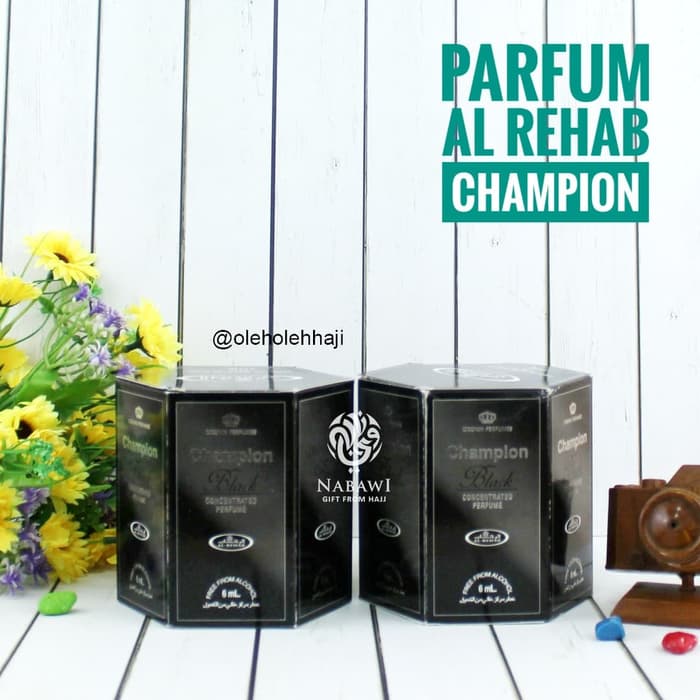 Parfum Champion yang di produksi dari Al Rehab ini mempunyai harum seperti parfum bellagio.Wangi parfum kaum adam yang disukai oleh kaum hawa. Sangat pas digunakan untuk beribadah maupun bepergian. Parfum Champion ini biasanya digunakan oleh kaum adam. Cocok sebagai oleh oleh haji dan umroh Anda. Satu pak parfum berisi 6 botol. Tiap botol berisi 6ml.