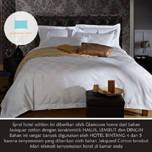 Sprei premium berbahan katun putih yang memberikan kesan mewah pada tempat tidur anda. The luxury premium Bedding