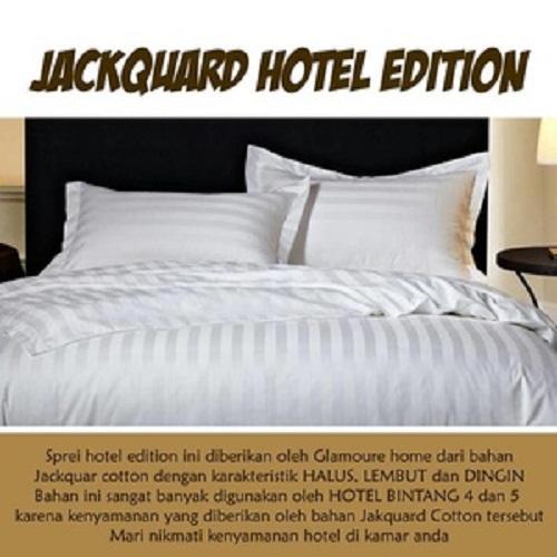 Sprei premium berbahan katun jackguard putih yang memberikan kesan mewah pada tempat tidur anda. The luxury premium Bedding