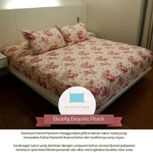 - Sprei + Bedcover set katun korea 160x200 beauty flower peach