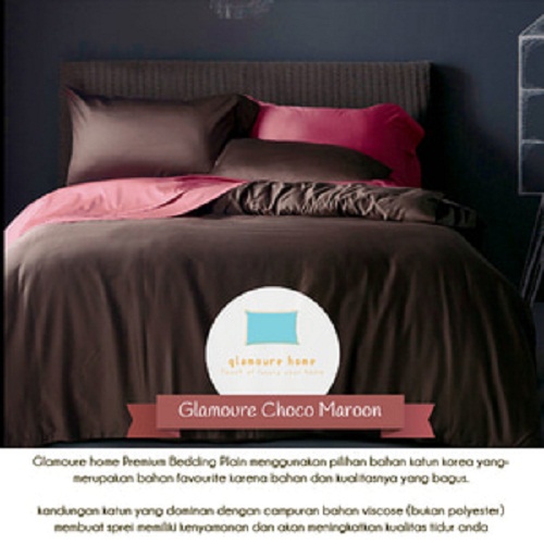 - Bedcover Set Polos Katun Korea ukuran 160x200 Choco Maroon