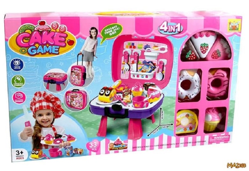 Mainan cake game 4in , dapat dijadikan koper , tas jinjing , meja , dan workshop , keren yg bunda untuk si kecil bermain peran bersama teman-temannya dan memudahkan untuk di bawa kemana mana nih .