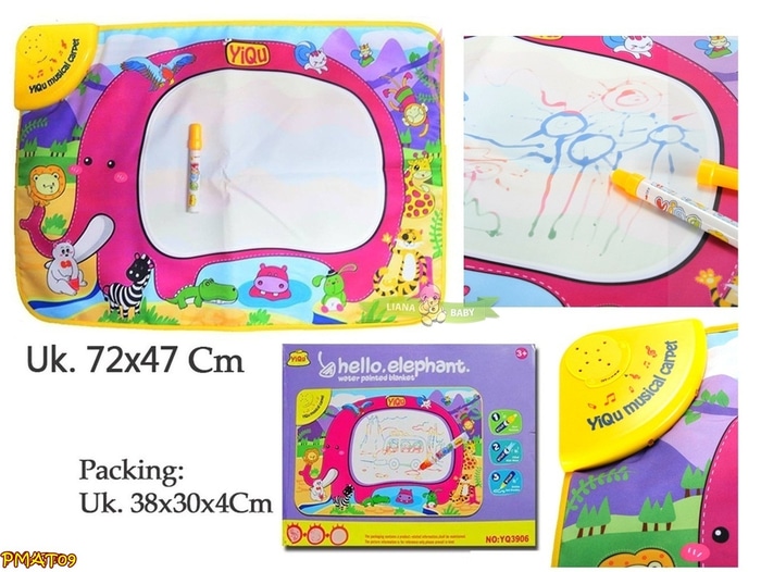 mainan karpet music Juga bisa menjadi papan tulis dengan spidol isi air putih. Tulisan bisa hilang sendiri karena mengering dalam waktu 3-5 menit.