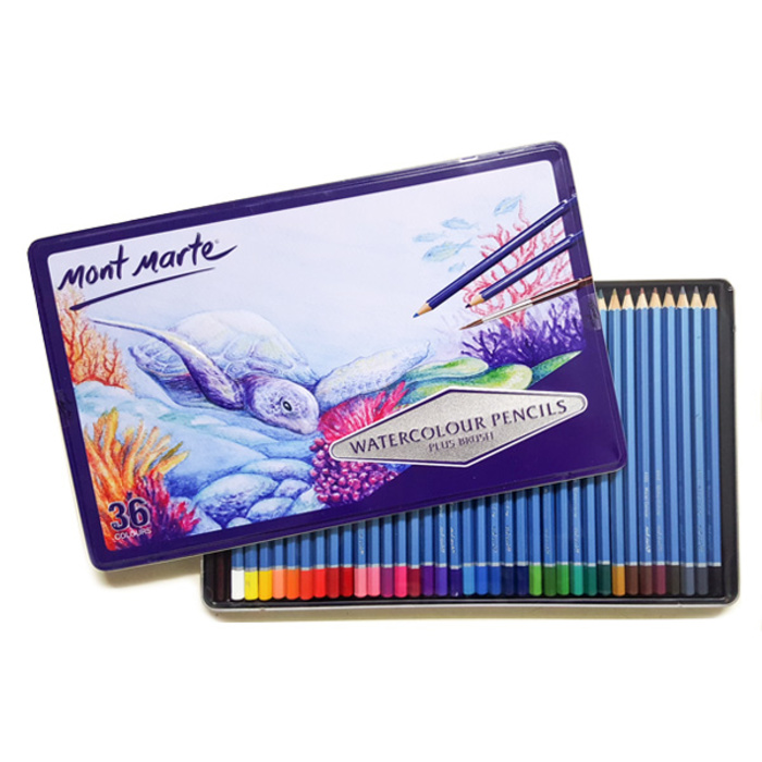 - Mont Marte Watercolour Pencils terdiri dari 36 pensil warna dgn ujung yang lembut namun tebal