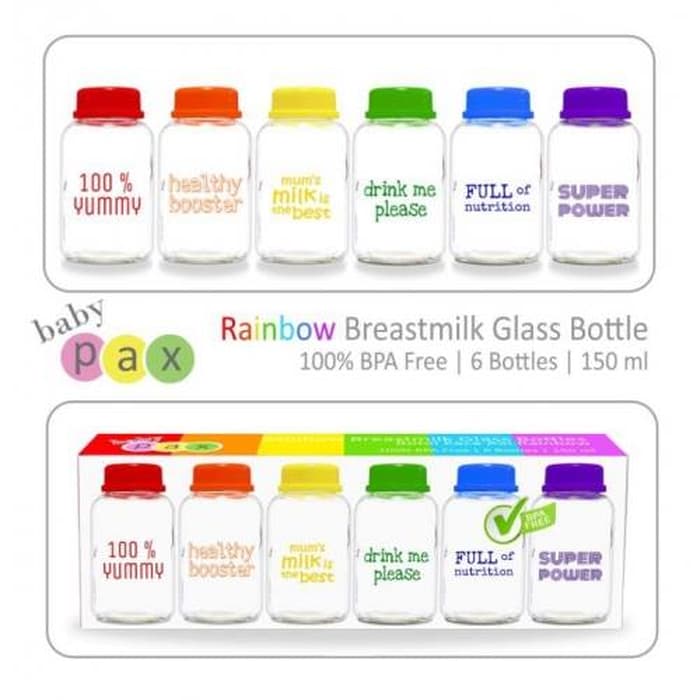 Paket berisi : 6 Botol Kaca ASI BabyPax 150 ml