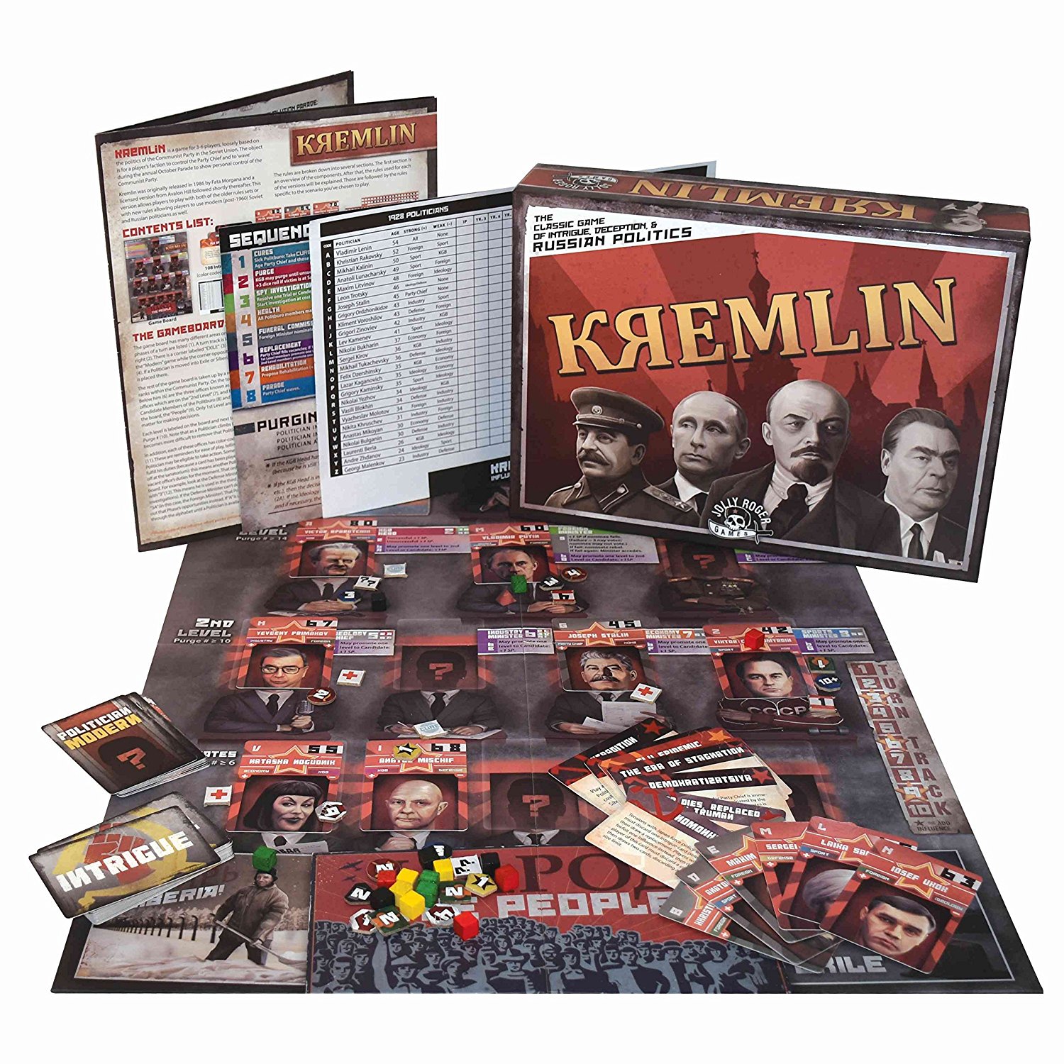 A game of political intrigue set in the Soviet Politburo. The game consists of a large number of politician cards, some of which form the first politburo. Politicians have certain stats (preferred offices, for instance) and an age.