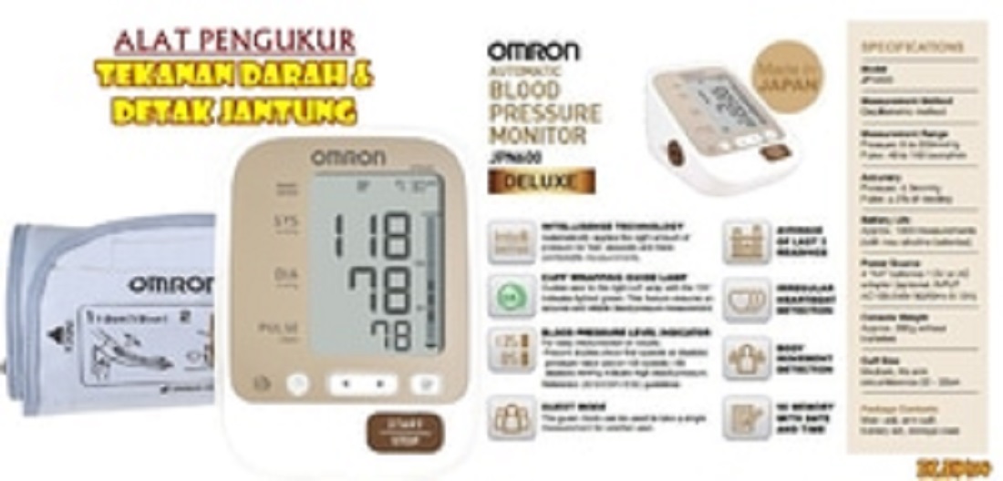 Tensimeter Omron JPN 600 merupakan tensitemeter digital yang mengukur tekanan darah dan detak jantung pada lengan atas. Tensimeter Omron JPN 600 dilengkapi dengan teknologi intellisense memberikan jaminan pengukuran tekanan darah yang cepat, nyaman, dengan hasil yang akurat dan dapat diandalkan.
