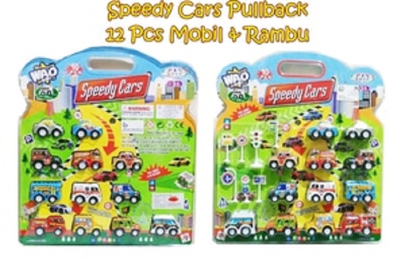 - MAI53 Mainan mobil Speedy Cars pullback 12 pcs mobil & rambu-rambu